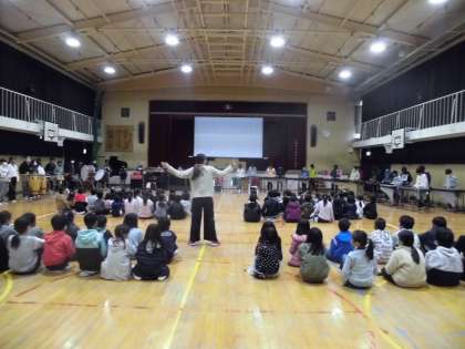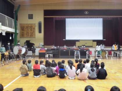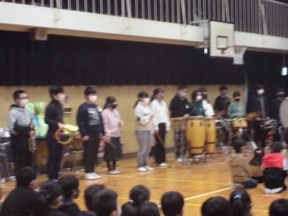 続いて「鬼滅の刃」の「紅連華」です。迫力ある演奏が講堂いっぱいに響きました。在校生はその素晴らしい演奏に圧倒されていました。