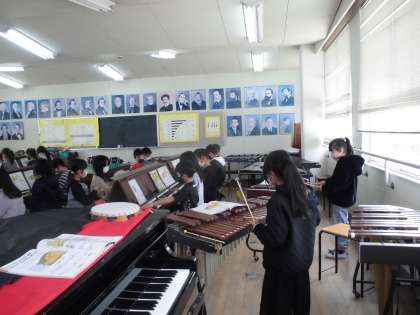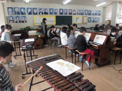 2年生は「こぐまの二月」の合奏に取り組んでいます。楽器のパートを替えていきながらいきながら演奏していきました。ぴったりと息が合う演奏で力をつけてきていることがよくわかりました。