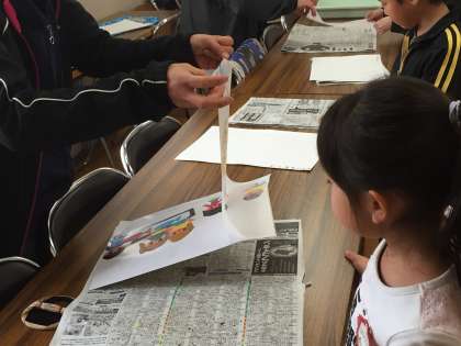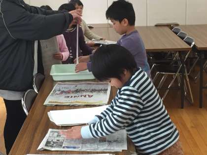 ドキドキしながら、順番を待ちます。バレンでこすった後で、きれいに色が出てきて、思わず笑顔がこぼれました。