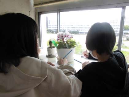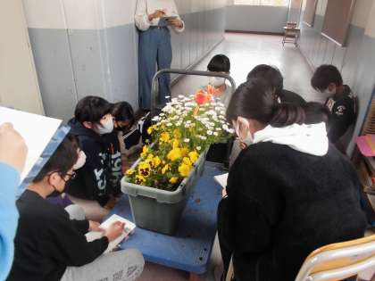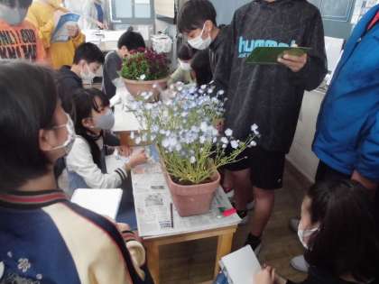6年生は春の花を描きました。よく見てていねいに描いていきました。