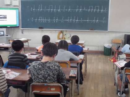 4年生は体育で「5歩鬼ごっこ」をしました。笛の合図で5歩歩き、友達との距離を詰めていき、タッチをします。音楽は「さくらさくら」の音楽鑑賞をしました。