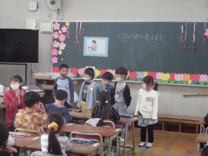 1年生はみんなの前で自分をアピールする自己紹介の学習をしました。短い言葉ですがしっかりと発表していました。