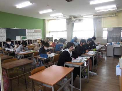 6年生は人数を半数にして習熟度別学習をしました。今日は「分数÷整数」の計算です。計算のしかたをみんなで考えていきました。