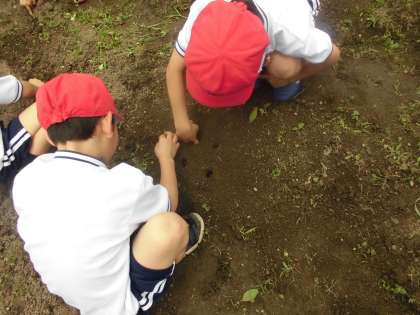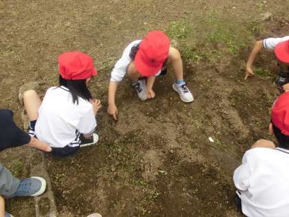 2年生は種まきをしました。種はオクラです。これから発芽から実がなるまで観察していきます。