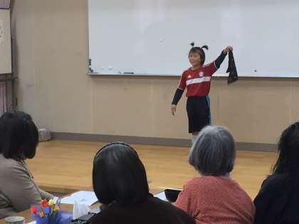 2年生の子どもたちから募集して、地域のお年寄りの「食事サービス」に参加しました。それぞれが、得意なことを披露しました。
