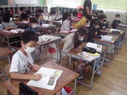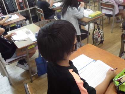 3年生は理科でモンシロチョウの学習をしています。通常は見ることができない卵から幼虫が孵化する場面を動画で見ました。国語では形式段落に印をつける学習に取り組むました。
