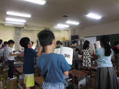 2年生は国語の本をていねいに読みました。マスクをして教科書を顔の前にしながら飛沫に気をつけて読んでいきました。