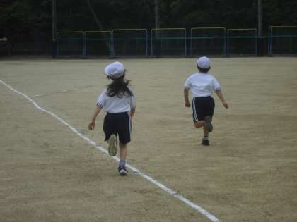 まもなく全学年で体力テストに取り組んでいきます。それに向けて各学年は練習を始めています。1年生ははじめての50m走の練習です。スタートのタイミングやまっすぐ走ることに気をつけて走っていました。