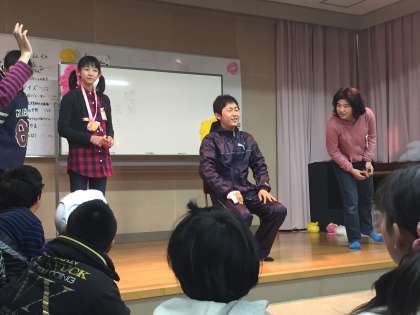 クイズでは、担任の先生も飛び入り参加しました。
