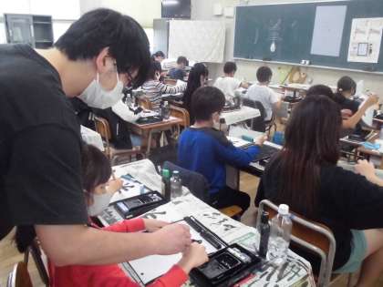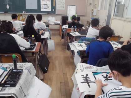 4年生は習字で「羊」を書きました。姿勢や運筆、書き順に気をつけてていねいに書いていきました。