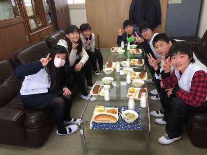 大半の子が校長室に来たことがあるので、緊張するということがありません。楽しく話をしながら、食べていました。中には職員室からおかわりをもらいに行く子もいました。