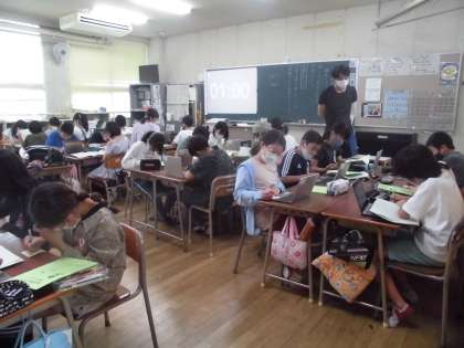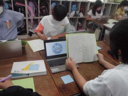 5年生は国語で環境について調べてきましたが、発表原稿が出来上がりました。今日はグループで回覧して、お友達から講評をもらい、修正するところを考えていました。