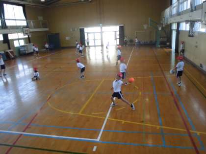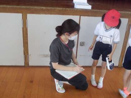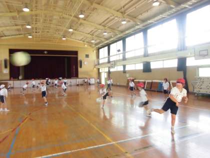 2年生はスポーツテストで握力を測定しました。歯を食いしばって力を入れていました。ドッジボールの投げ方を練習し、正確にボールを投げたり受けたりしていました。