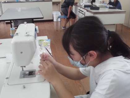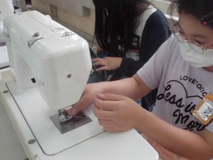 5年生はミシンの使い方を段階を踏んで学習しています。今日は上糸と下糸のつけ方を学びました。理解しても実際に糸を通していくのはむずかしそうでした。