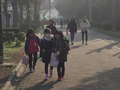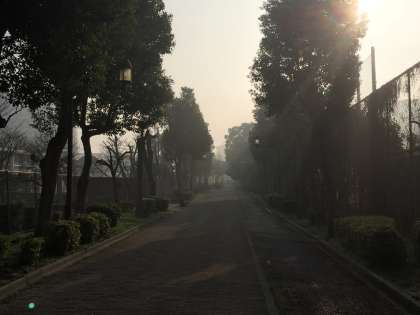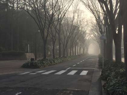 17日は、霧の朝になりました。霧と靄(もや)の違いを正門の前で話題にしました。視界が1キロメートル未満が霧、それ以上先がみえるものが靄(もや)で、基本的には同じ現象だと説明しました。