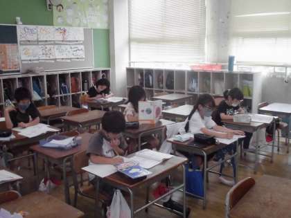 3年生は算数で棒グラフの読み取りを学習しました。ローマ字も習い、ノートに書いて読み方を覚えていました。ローマ字はパソコン入力で必要なので、これから使うことが多くなるでしょう。