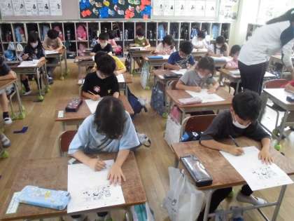 1年生はスポーツテストで握力を測りました。もちろん、初めての握力測定です。歯を食いしばる姿に真剣さが伝わってきました。教室では生活科のテストで頭を使っていました。