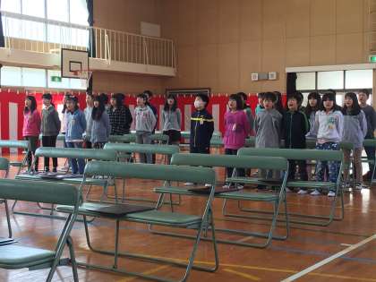 明後日に卒業式をひかえ、当日と同じ時間帯で通し練習を行いました。証書授与や呼びかけなど、とても上手にできました。5年生も在校生代表として、とても立派でした。もう、本番を待つばかりに仕上がっています。