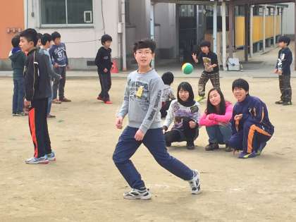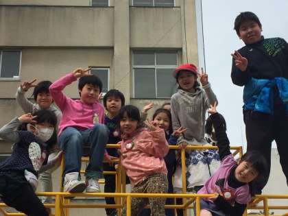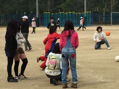 休み時間の6年生です。いつもと変わらない風景です。1年生と遊び、男女いっしょに遊んでいました。この自然体が彼ららしくていいなと思いました。明日、卒業の日を迎えます。