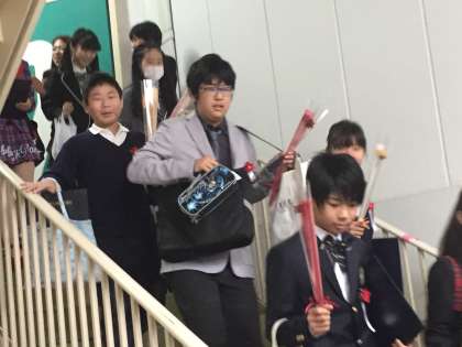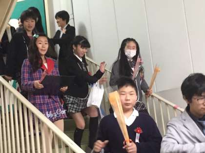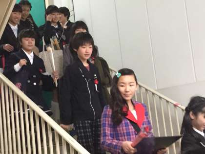 慣れ親しんだ階段を通り、小学校生活に別れを告げます。