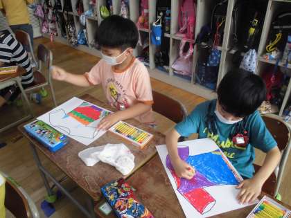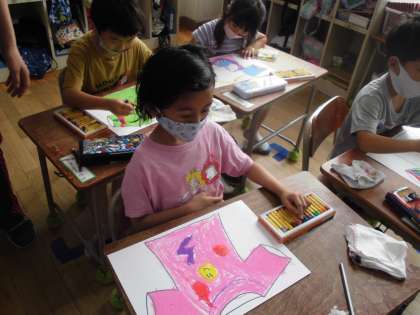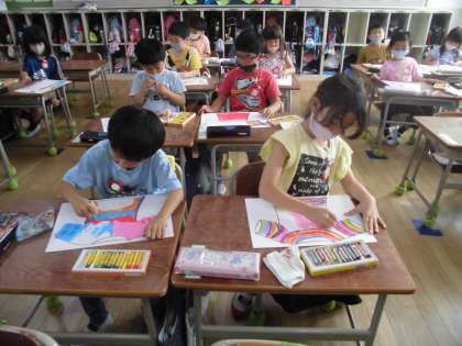 梅雨の中休みが続き、暑さが少しずつ厳しくなってきました。このような時節にぴったりな夏服の絵を1年生が描いていきました。カラフルな夏服がいっぱい出来上がり、子どもたちの発想の豊かさを感じました。