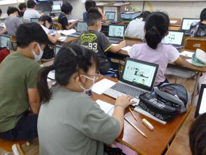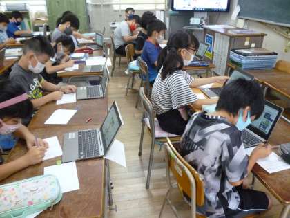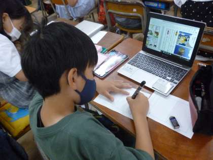 4年生はことわざや故事成語を調べる学習をしています。調べたことを用紙にまとめていき、本の形にしています。