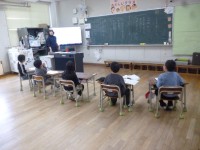 1年生は七夕の飾りを作りました。はさみでていねいに折り紙を切ってきれいな飾りを作っていきました。
