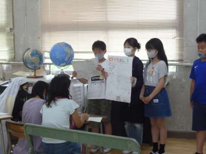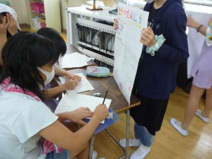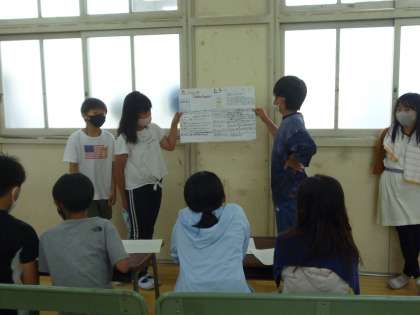 5年生は理科の調べ学習でまとめてきた「人のたんじょう」についてグループごとに発表していきました。聞く側のグループは発表で分かったことを記録していました。