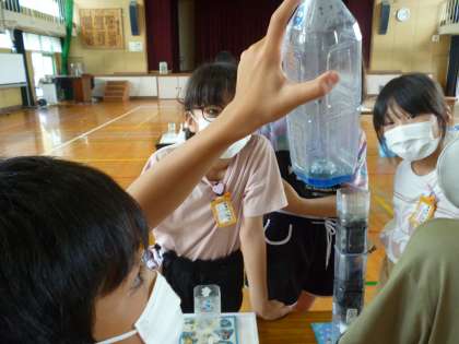 4年生は大阪市水道局の方々に来ていただき、「水道教室」に参加しました。本来ならば浄水場に見学に行く予定でしたが、1学期は社会見学に行けなくなったので、学校まで水道局の方々に来ていただきました。川の水が飲み水になる過程を実験で確かめていきました。毎日、あたりまえのように飲んだり使っている水道水がとても安全であり、そのためにたくさんの努力があることを理解することができました。