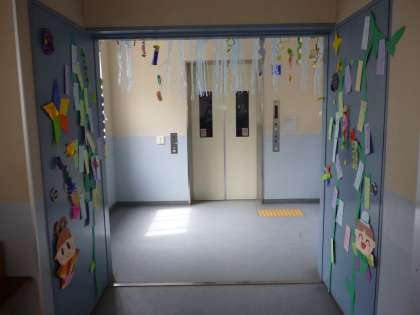 大阪府の「まん延防止措置」な延長になりましたが、林間学習の行き先の兵庫県が「緊急事態宣言」になっていないので林間学習は予定通りに実施できるので、5年生は林間学習に向けて取り組みを進めています。キャンプファイヤーでの出し物を調べたり、食事の時のあいさつの練習をしていきました。エレベーターホールには5年生が自主的に作った飾りがあり、明るい雰囲気になりました。