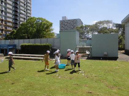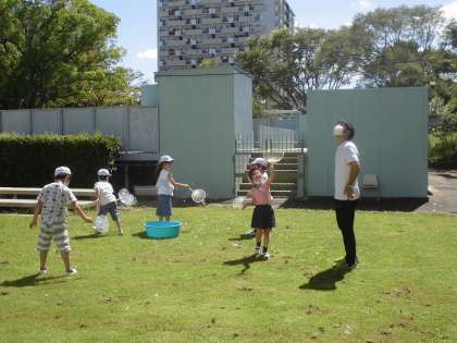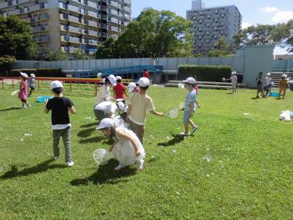 1年生は生活科でシャボン玉を作りました。ストローで作った後はうちわの枠で大きなシャボン玉を作っていきました。みんな楽しく活動し、大きなシャボン玉が芝生広場にたくさんできていました。1年生の笑顔が素敵です。
