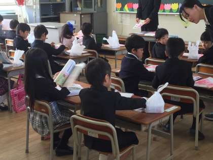 教室で教科書を渡しました。子どもたちは、さっそく中を開いて見ていました。この真っ新な気持ちを大切にしていきたいです。
