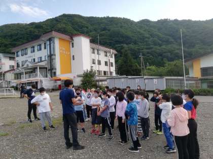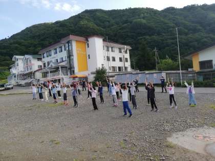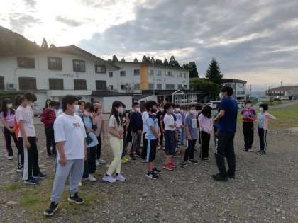 ラジオ体操を終え、今日の予定を確認します。天気は晴れで、すがすがしい高原は気分がよくなります。
