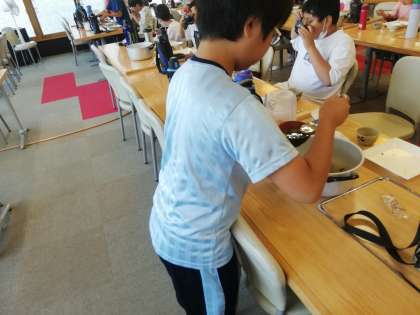 朝食をしっかり食べて元気いっぱいです。次の登山の用意のため部屋に戻ります。