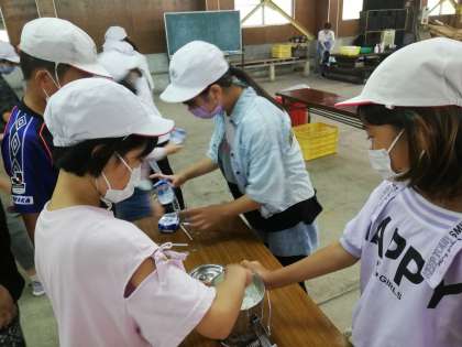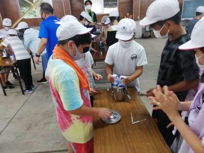 生地に牛乳を入れ、混ぜていきます。班であらかじめ決めた味にするため、バニアエッセンスもしくはココアパウダーを少量入れます。