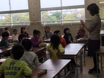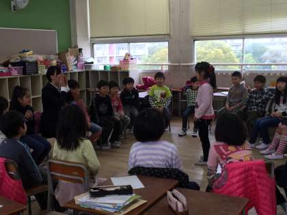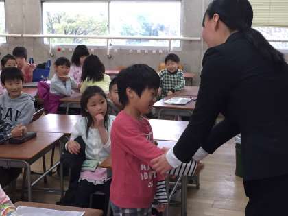 3年生は、落ち着いた雰囲気で学級をスタートさせていました。先生と握手したり、ゲームをしたりしていました。
