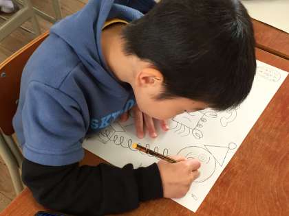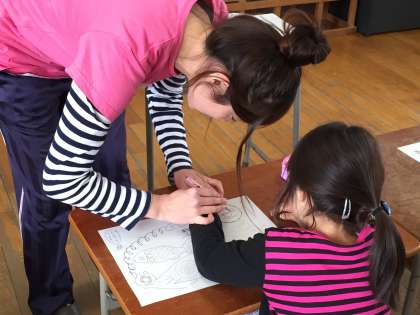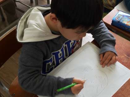 1年生は鉛筆を正しく持って、線を引く学習からスタートです。みんな、真剣に取り組んでいました。