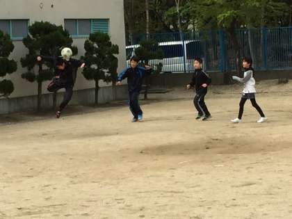 長く続いた雨空のために、外遊びができませんでした。久しぶりの太陽の下で、思い切り遊びました。