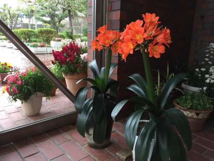 太陽地区にお住いのみなさまから、よく本校の花壇をほめていただきます。時には、お花をお持ちいただく場合もあります。このたびは、こんなすてきなお花をいただきました。玄関できれいに咲いています。