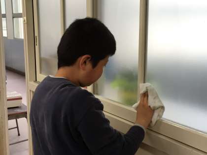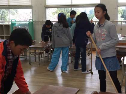 1年生が下校した後、6年生が教室を清掃します。細かなところまで、真心こめてきれいにしています。