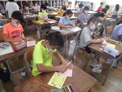 3年生は地域の敬老の日にお渡しするメッセージカードを作りました。子どもたちは心を込めて文章を考え、ていねいに色を塗っていました。このカードは全学年全児童が作成し、地域のみなさんに敬老の日に役員さんを通じてお渡しいたします。