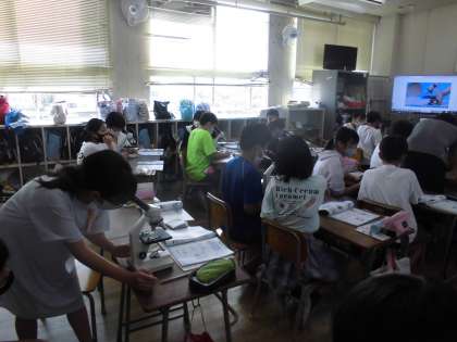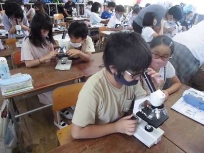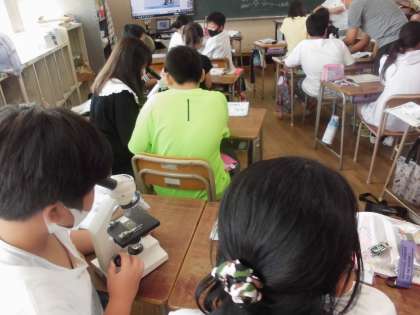 5年生は顕微鏡の使い方を学習しました。操作がむずかしかったですが、ゾウリムシや花粉など肉眼では見ることのできない世界に入っていきました。