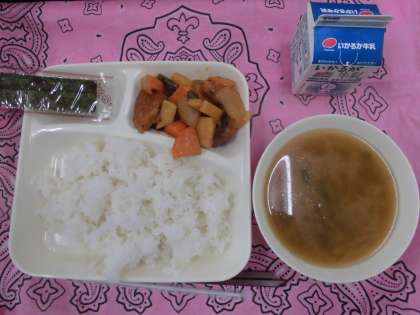9月3日の給食は「酢豚」「中華みそスープ」「焼きのり」です。今日の献立をもとに6年生は家庭科の学習を進めていきました。