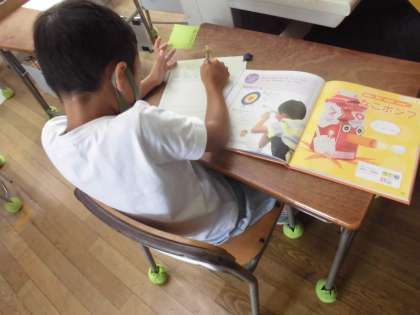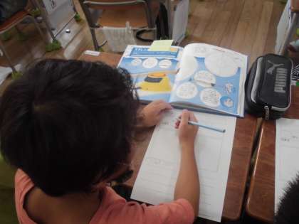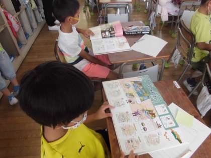2年生は図工で作るおもちゃの構想を練りました。図書館の本を参考にしてどのようなおもちゃを作るか考え、用紙に書いていきました。