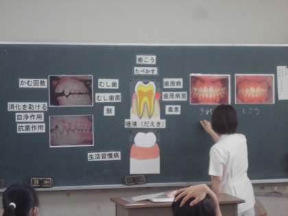 6年生は歯科校医の先生と歯科衛生士の先生による「歯と口の健康教室」の学習をしました。この学習を通して歯の大切さと歯磨きや食生活の重要性を学びました。