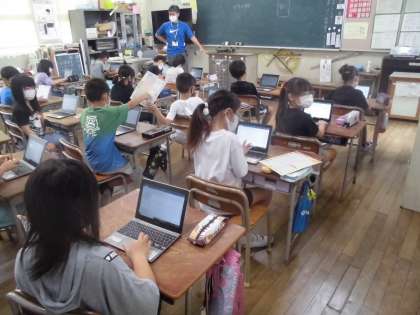 3年生はローマ字の学習をパソコンでしました。キーボードでローマ字を操作し、入力していきました。