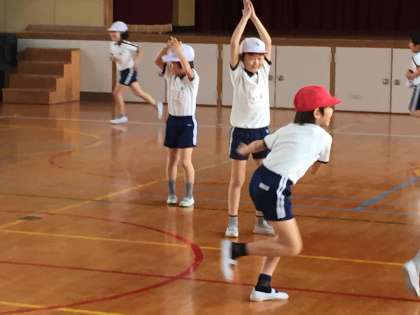雨天が続き子どもたちは十分に体を動かすことができません。3年生では体育の時間におにごっこをしてエネルギーを発散していました。
