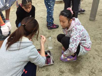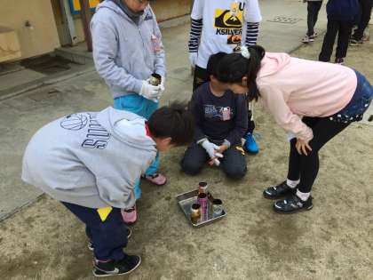 6年生は理科の学習で、ものの燃え方を学びます。今日は缶の中で割り箸を燃やして、その燃え方を確かめました。