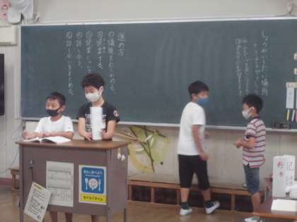 4年生は学級会で話し合い活動を進めています。司会や記録など役割を決めて議題についてグループで話し合いました。今日の議題は「入学する子たちに、学校のどんなところを紹介したいか」です。来年入学する子どもたちの気持ちになって活発に話し合っていました。