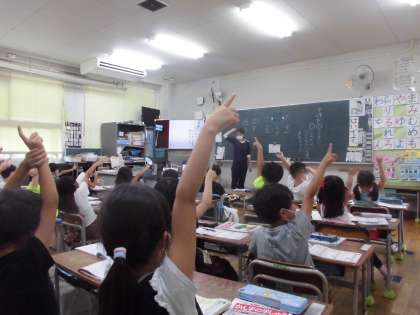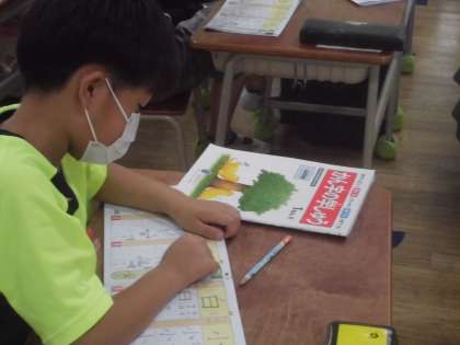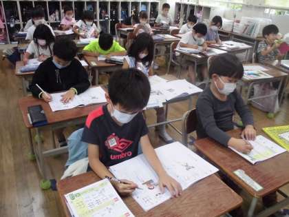 1年生の習った漢字は今日で24字になりました。手を挙げて字を書き、次にドリルに指でなぞり、最後は実際に書いていきました。これからもどんどん増えていきます。
